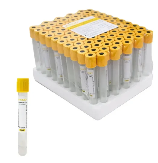 Tubo de extracción de sangre de un solo uso Activador Clot y gel. Oro cuenta con presión negativa al vacío, lo que garantiza una recolección de sangre precisa, segura y cuantitativa. Cada tubo está conformado por un tubo de ensayo, un casco de seguridad y un tapón de goma, con aditivo.